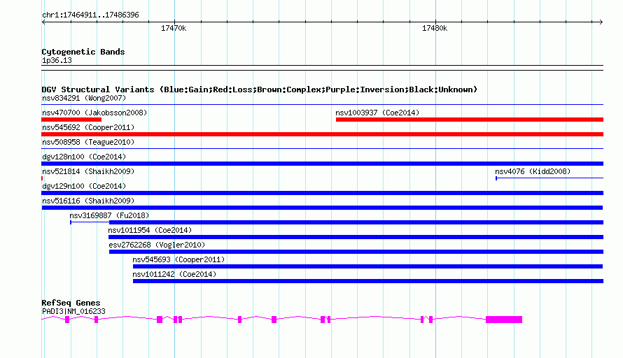 Variant DetailsVariant: nsv516116| Internal ID | 15443409 | | Landmark | | | Location Information | | | Cytoband | 1p36.13 | | Allele length | | Assembly | Allele length | | hg38 | 21486 | | hg19 | 21486 | | hg18 | 21486 | | hg17 | 21486 |
