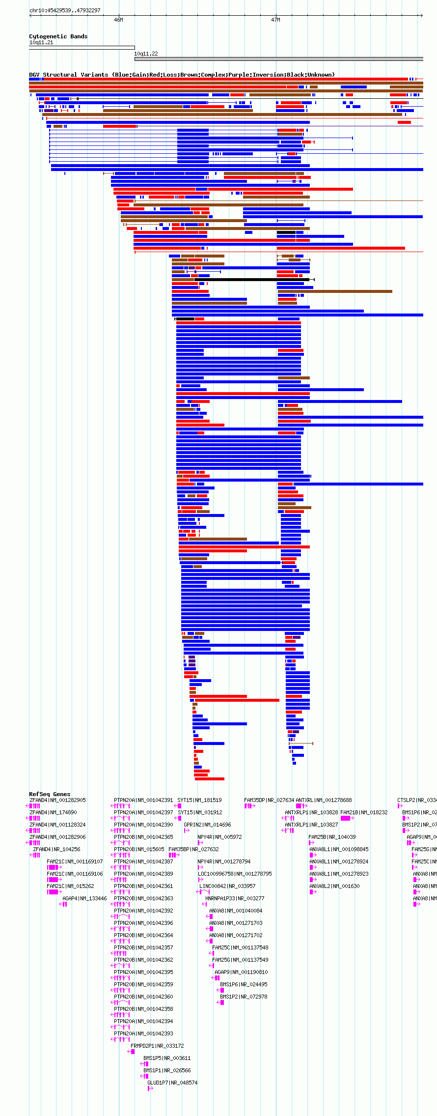 | | Variant Type | CNV gain+loss | | Copy Number | | | Allele State | | | Allele Origin | | | Probe Count | | | Validation Flag | | | Merged Status | M | | Merged Variants | | | Supporting Variants | nssv690753, nssv663204, nssv657523, nssv657392, nssv660713, nssv684127, nssv676352, nssv684852, nssv673235, nssv681474, nssv653294, nssv652705, nssv673500, nssv668151, nssv681271, nssv690862, nssv676139, nssv670156, nssv672960, nssv689566, nssv657292, nssv686828, nssv662649, nssv691665, nssv671219, nssv656994, nssv656428, nssv681950, nssv690721, nssv691550, nssv661706, nssv658747, nssv674674, nssv671165, nssv677400, nssv683159, nssv688167, nssv672259, nssv692023, nssv658120, nssv686998, nssv676480, nssv667961, nssv660072, nssv683375, nssv679039, nssv680257, nssv689415, nssv664866, nssv676406, nssv660148, nssv657734, nssv677355, nssv664468, nssv678861, nssv653354, nssv673942, nssv690829, nssv686377, nssv654718, nssv665948, nssv654115, nssv693541, nssv656047, nssv665198, nssv682918, nssv655397, nssv653990, nssv665530, nssv652795, nssv657930, nssv659164, nssv674017, nssv672977, nssv654203, nssv682861, nssv666042, nssv690696, nssv669898, nssv667836, nssv680478, nssv652571, nssv680582, nssv685550, nssv681848, nssv676499, nssv686890, nssv673155, nssv675049, nssv663999, nssv687650, nssv656961, nssv683219, nssv667488, nssv652816, nssv680874, nssv655201, nssv665701, nssv651767, nssv686924, nssv655642, nssv678693, nssv674328, nssv665683, nssv664302, nssv676249, nssv661997, nssv688416, nssv667135, nssv658759, nssv678256, nssv669636, nssv704558, nssv678528, nssv667171, nssv673630, nssv653295, nssv663693, nssv661938, nssv661346, nssv674892, nssv655680, nssv663180, nssv688515, nssv659378, nssv687082, nssv679136, nssv669184, nssv660680, nssv685936, nssv679420, nssv665035, nssv687041, nssv675078, nssv687124, nssv666608, nssv685191, nssv668804, nssv652986, nssv666145, nssv659261, nssv652059, nssv691303, nssv661268, nssv683461, nssv662008, nssv672696, nssv672913, nssv656508, nssv688200, nssv655851, nssv677911, nssv677605, nssv692110, nssv689727, nssv660880, nssv688986, nssv679315, nssv688303, nssv652815, nssv692664, nssv655726, nssv678233, nssv680763, nssv653565, nssv668399, nssv658527, nssv668122, nssv671995, nssv657364, nssv665077, nssv684851, nssv665217, nssv652449, nssv653016, nssv691470, nssv660300, nssv684015, nssv678923, nssv675538, nssv660379, nssv664704, nssv678709, nssv667888, nssv677229, nssv656693, nssv654928, nssv663792, nssv658219, nssv675279, nssv661046, nssv675290, nssv668528, nssv687719, nssv686545, nssv668969, nssv659187, nssv693052, nssv692482, nssv690671, nssv688323, nssv663230, nssv660863, nssv684519, nssv652192, nssv671843, nssv662095, nssv653530, nssv657801, nssv655324, nssv674626, nssv680954, nssv657976 | | Samples | | | Known Genes | AGAP4, AGAP9, ANTXRL, ANTXRLP1, ANXA8, ANXA8L1, ANXA8L2, BMS1P1, BMS1P2, BMS1P5, BMS1P6, CTSLP2, FAM21B, FAM21C, FAM25B, FAM25C, FAM25G, FAM35BP, FAM35DP, FRMPD2P1, GLUD1P7, GPRIN2, HNRNPA1P33, LINC00842, LOC100996758, NPY4R, PTPN20A, PTPN20B, SYT15, ZFAND4 | | Method | SNP array | | Analysis | Sample-level CNVs | | Platform | GPL6434 | | Comments | | | Reference | Shaikh_et_al_2009 | | Pubmed ID | 19592680 | | Accession Number(s) | nsv516485