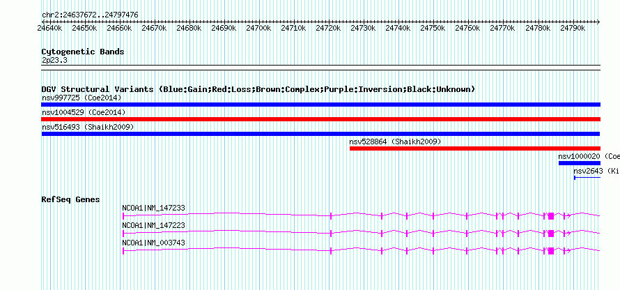 Variant DetailsVariant: nsv516493| Internal ID | 15443786 | | Landmark | | | Location Information | | | Cytoband | 2p23.3 | | Allele length | | Assembly | Allele length | | hg38 | 159805 | | hg19 | 159805 | | hg18 | 159805 | | hg17 | 159805 |