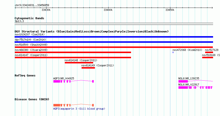 Variant DetailsVariant: nsv516500| Internal ID | 15097107 | | Landmark | | | Location Information | | | Cytoband | 9p13.3 | | Allele length | | Assembly | Allele length | | hg38 | 31929 | | hg19 | 31929 | | hg18 | 31929 | | hg17 | 31929 |