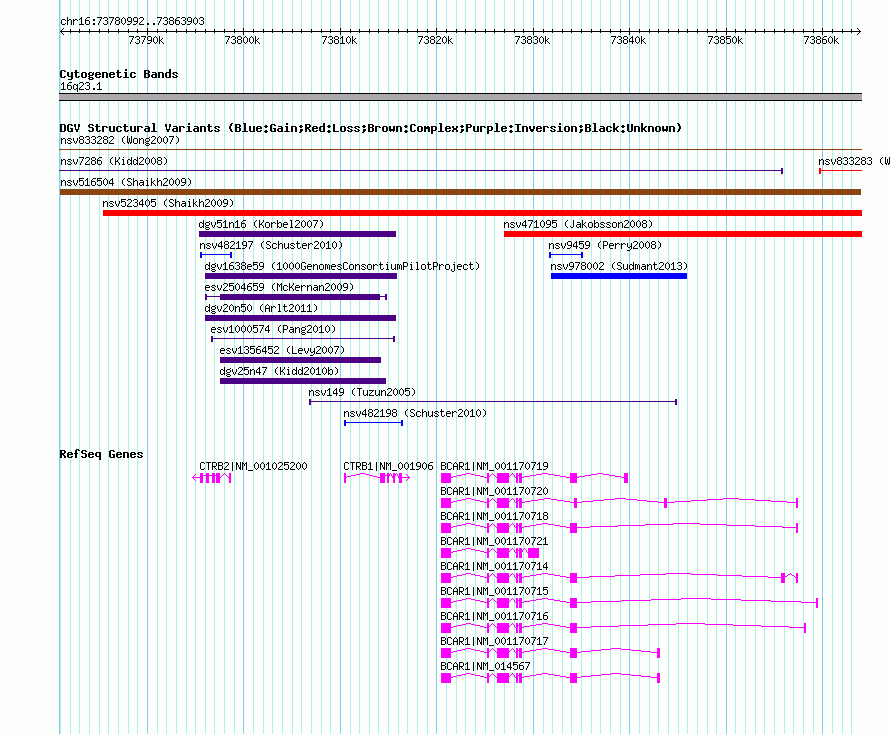 Variant DetailsVariant: nsv516504| Internal ID | 15443797 | | Landmark | | | Location Information | | | Cytoband | 16q23.1 | | Allele length | | Assembly | Allele length | | hg38 | 82912 | | hg19 | 82912 | | hg18 | 82912 | | hg17 | 82912 |