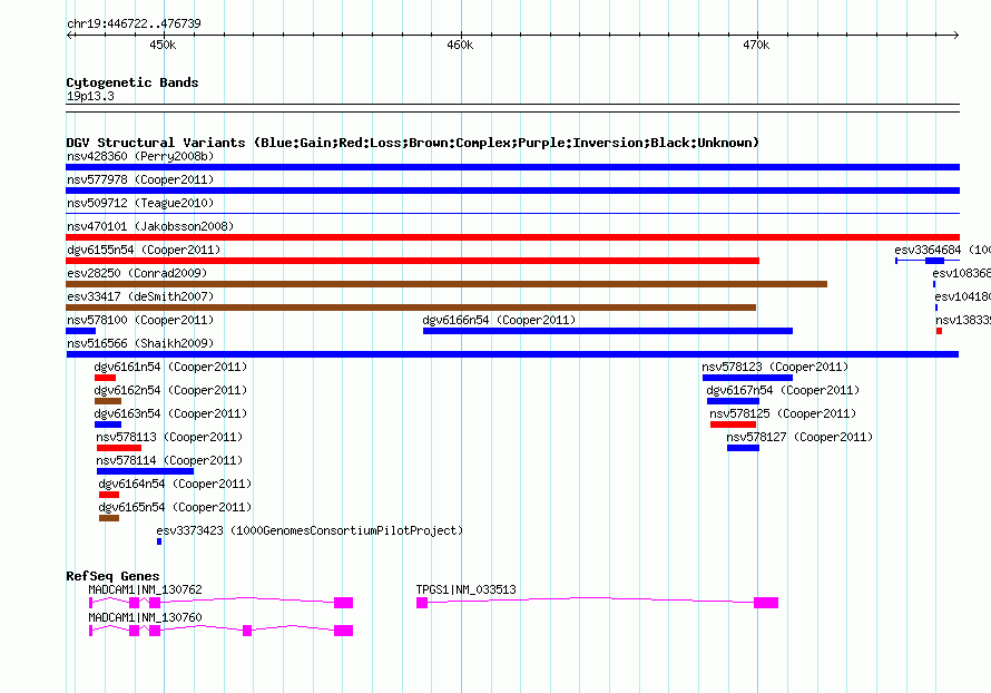 | | Variant Type | CNV gain | | Copy Number | | | Allele State | | | Allele Origin | | | Probe Count | | | Validation Flag | | | Merged Status | M | | Merged Variants | | | Supporting Variants | nssv677303, nssv660354, nssv669213 | | Samples | | | Known Genes | MADCAM1, TPGS1 | | Method | SNP array | | Analysis | Sample-level CNVs | | Platform | GPL6434 | | Comments | | | Reference | Shaikh_et_al_2009 | | Pubmed ID | 19592680 | | Accession Number(s) | nsv516566