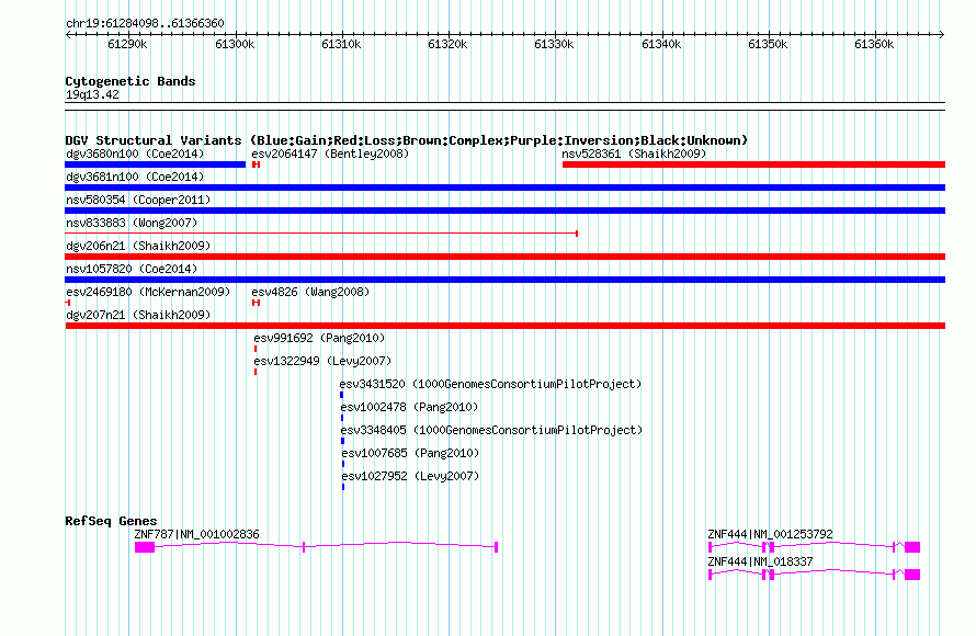 Variant DetailsVariant: nsv517365| Internal ID | 15097972 | | Landmark | | | Location Information | | | Cytoband | 19q13.42 | | Allele length | | Assembly | Allele length | | hg38 | 82260 | | hg19 | 82263 | | hg18 | 82263 | | hg17 | 82263 |