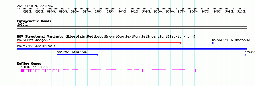 Variant DetailsVariant: nsv517367| Internal ID | 15097974 | | Landmark | | | Location Information | | | Cytoband | 2p25.1 | | Allele length | | Assembly | Allele length | | hg38 | 193013 | | hg19 | 193012 | | hg18 | 193012 | | hg17 | 193012 |