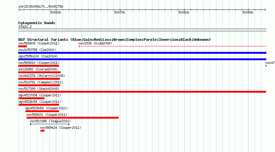 Variant DetailsVariant: nsv517399| Internal ID | 15444692 | | Landmark | | | Location Information | | | Cytoband | 15q21.2 | | Allele length | | Assembly | Allele length | | hg38 | 38587 | | hg19 | 38587 | | hg18 | 38587 | | hg17 | 38587 |