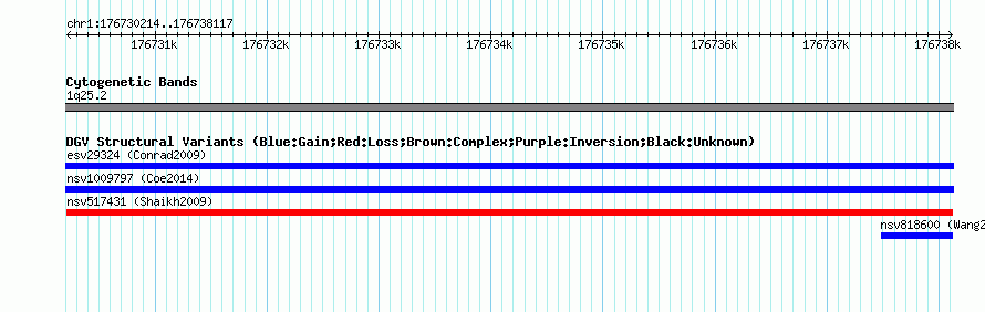 Variant DetailsVariant: nsv517431| Internal ID | 15444724 | | Landmark | | | Location Information | | | Cytoband | 1q25.2 | | Allele length | | Assembly | Allele length | | hg38 | 7904 | | hg19 | 7904 | | hg18 | 7904 | | hg17 | 7904 |