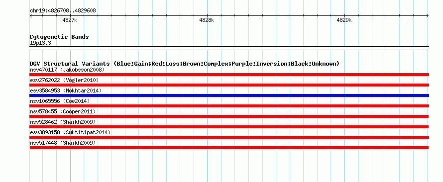 Variant DetailsVariant: nsv517448| Internal ID | 15098055 | | Landmark | | | Location Information | | | Cytoband | 19p13.3 | | Allele length | | Assembly | Allele length | | hg38 | 2901 | | hg19 | 2901 | | hg18 | 2901 | | hg17 | 2901 |