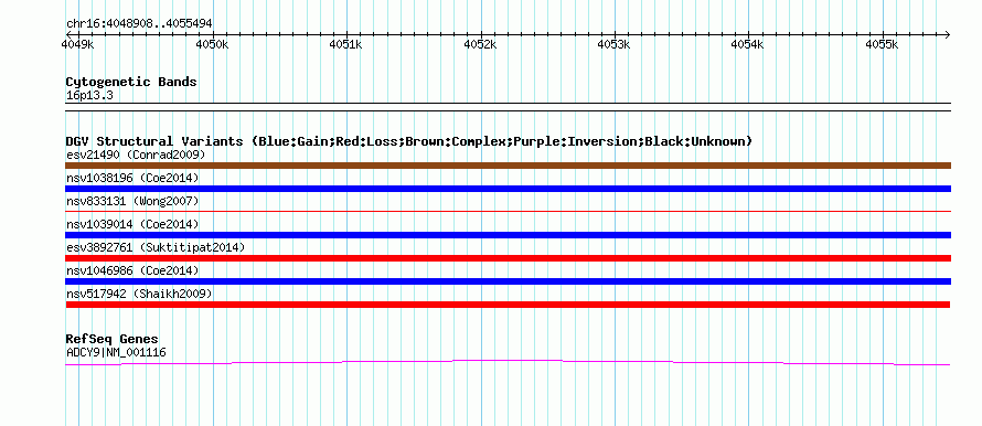 | | Variant Type | CNV loss | | Copy Number | | | Allele State | | | Allele Origin | | | Probe Count | | | Validation Flag | | | Merged Status | M | | Merged Variants | | | Supporting Variants | nssv695353 | | Samples | | | Known Genes | ADCY9 | | Method | SNP array | | Analysis | Sample-level CNVs | | Platform | GPL6434 | | Comments | | | Reference | Shaikh_et_al_2009 | | Pubmed ID | 19592680 | | Accession Number(s) | nsv517942