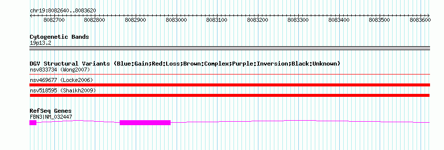 | | Variant Type | CNV loss | | Copy Number | | | Allele State | | | Allele Origin | | | Probe Count | | | Validation Flag | | | Merged Status | M | | Merged Variants | | | Supporting Variants | nssv696042 | | Samples | | | Known Genes | FBN3 | | Method | SNP array | | Analysis | Sample-level CNVs | | Platform | GPL6434 | | Comments | | | Reference | Shaikh_et_al_2009 | | Pubmed ID | 19592680 | | Accession Number(s) | nsv518595