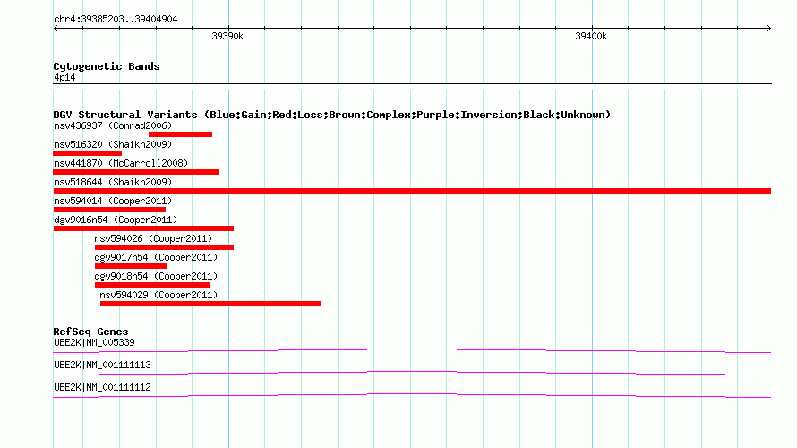 Variant DetailsVariant: nsv518644| Internal ID | 15445937 | | Landmark | | | Location Information | | | Cytoband | 4p14 | | Allele length | | Assembly | Allele length | | hg38 | 19702 | | hg19 | 19702 | | hg18 | 19702 | | hg17 | 19702 |