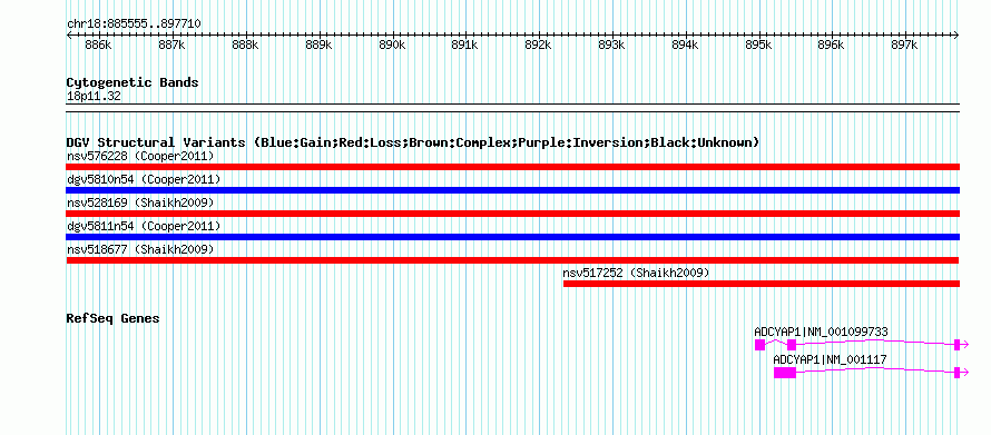 Variant DetailsVariant: nsv518677| Internal ID | 15445970 | | Landmark | | | Location Information | | | Cytoband | 18p11.32 | | Allele length | | Assembly | Allele length | | hg38 | 12156 | | hg19 | 12156 | | hg18 | 12156 | | hg17 | 12156 |