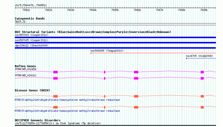 Variant DetailsVariant: nsv518862| Internal ID | 15099469 | | Landmark | | | Location Information | | | Cytoband | 5p15.31 | | Allele length | | Assembly | Allele length | | hg38 | 9034 | | hg19 | 9034 | | hg18 | 9034 | | hg17 | 9034 |