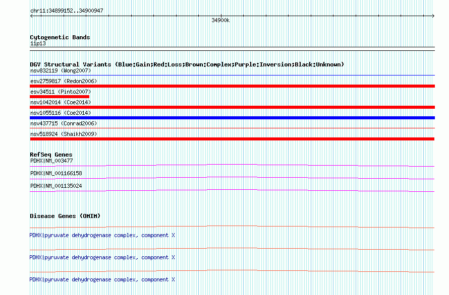 Variant DetailsVariant: nsv518924| Internal ID | 15446217 | | Landmark | | | Location Information | | | Cytoband | 11p13 | | Allele length | | Assembly | Allele length | | hg38 | 1796 | | hg19 | 1796 | | hg18 | 1796 | | hg17 | 1796 |