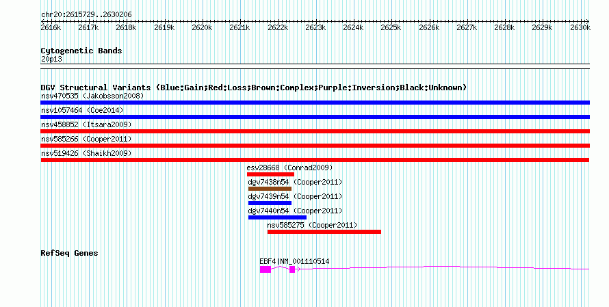 | | Variant Type | CNV loss | | Copy Number | | | Allele State | | | Allele Origin | | | Probe Count | | | Validation Flag | | | Merged Status | M | | Merged Variants | | | Supporting Variants | nssv673188, nssv656147 | | Samples | | | Known Genes | EBF4 | | Method | SNP array | | Analysis | Sample-level CNVs | | Platform | GPL6434 | | Comments | | | Reference | Shaikh_et_al_2009 | | Pubmed ID | 19592680 | | Accession Number(s) | nsv519426