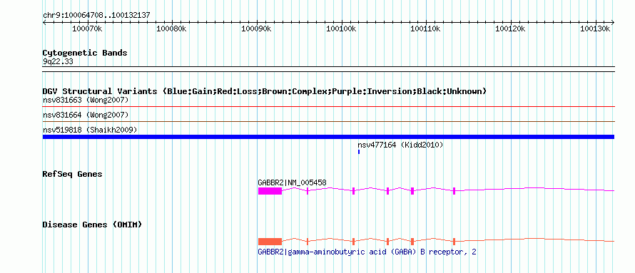 Variant DetailsVariant: nsv519818| Internal ID | 15100425 | | Landmark | | | Location Information | | | Cytoband | 9q22.33 | | Allele length | | Assembly | Allele length | | hg38 | 67430 | | hg19 | 67430 | | hg18 | 67430 | | hg17 | 67430 |
