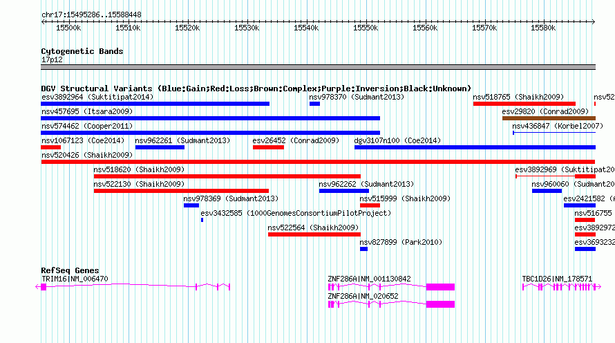 Variant DetailsVariant: nsv520426| Internal ID | 15447719 | | Landmark | | | Location Information | | | Cytoband | 17p12 | | Allele length | | Assembly | Allele length | | hg38 | 93163 | | hg19 | 93163 | | hg18 | 93163 | | hg17 | 93163 |