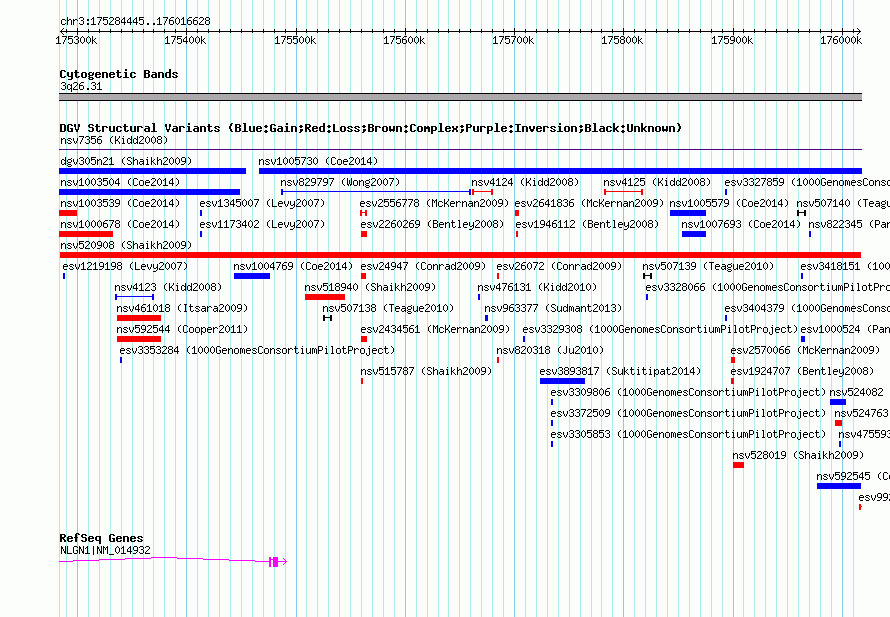 | | Variant Type | CNV loss | | Copy Number | | | Allele State | | | Allele Origin | | | Probe Count | | | Validation Flag | | | Merged Status | M | | Merged Variants | | | Supporting Variants | nssv697682 | | Samples | | | Known Genes | NLGN1 | | Method | SNP array | | Analysis | Sample-level CNVs | | Platform | GPL6434 | | Comments | | | Reference | Shaikh_et_al_2009 | | Pubmed ID | 19592680 | | Accession Number(s) | nsv520908