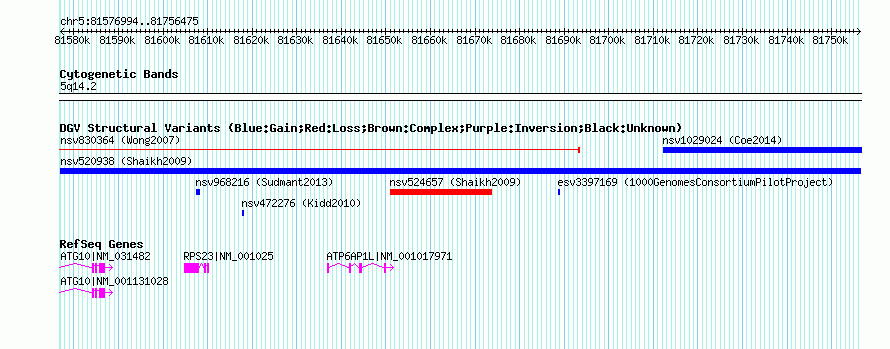 | | Variant Type | CNV gain | | Copy Number | | | Allele State | | | Allele Origin | | | Probe Count | | | Validation Flag | | | Merged Status | M | | Merged Variants | | | Supporting Variants | nssv697698 | | Samples | | | Known Genes | ATG10, ATP6AP1L, RPS23 | | Method | SNP array | | Analysis | Sample-level CNVs | | Platform | GPL6434 | | Comments | | | Reference | Shaikh_et_al_2009 | | Pubmed ID | 19592680 | | Accession Number(s) | nsv520938
