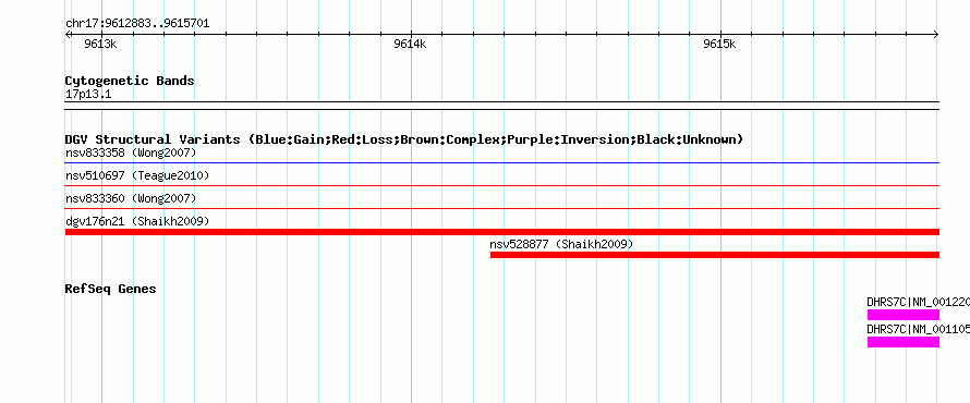 Variant DetailsVariant: nsv521132| Internal ID | 15101739 | | Landmark | | | Location Information | | | Cytoband | 17p13.1 | | Allele length | | Assembly | Allele length | | hg38 | 2819 | | hg19 | 2819 | | hg18 | 2819 | | hg17 | 2819 |