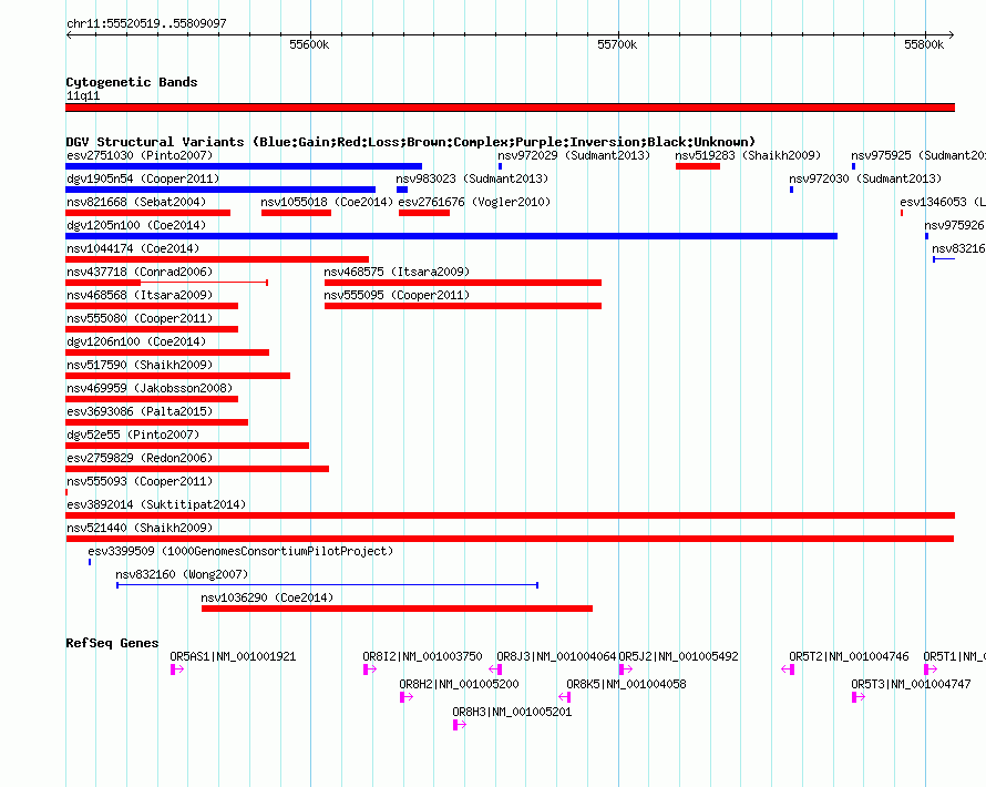 Variant DetailsVariant: nsv521440| Internal ID | 15448733 | | Landmark | | | Location Information | | | Cytoband | 11q11 | | Allele length | | Assembly | Allele length | | hg38 | 288579 | | hg19 | 288579 | | hg18 | 288579 | | hg17 | 288579 |