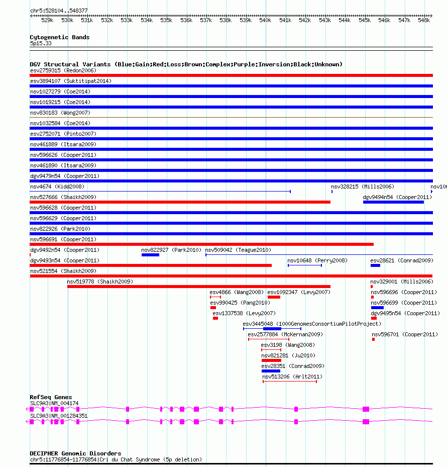 Variant DetailsVariant: nsv521554| Internal ID | 15448847 | | Landmark | | | Location Information | | | Cytoband | 5p15.33 | | Allele length | | Assembly | Allele length | | hg38 | 20274 | | hg19 | 20274 | | hg18 | 20274 | | hg17 | 20274 |