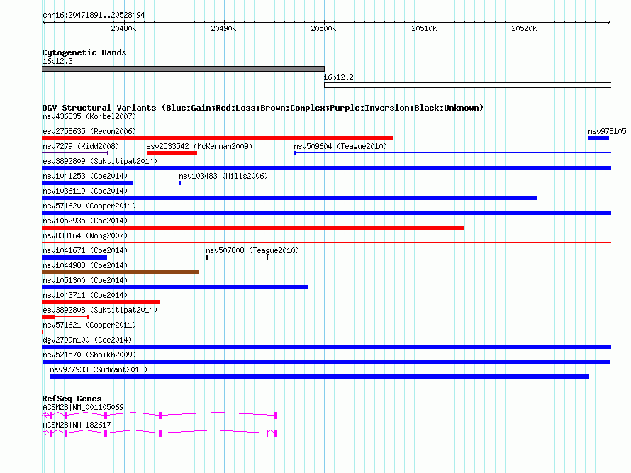 Variant DetailsVariant: nsv521570| Internal ID | 15448863 | | Landmark | | | Location Information | | | Cytoband | 16p12.2 | | Allele length | | Assembly | Allele length | | hg38 | 56604 | | hg19 | 56604 | | hg18 | 56604 | | hg17 | 56604 |