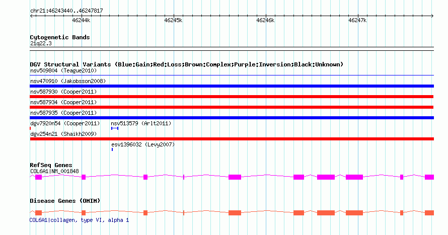 Variant DetailsVariant: nsv521579| Internal ID | 15448872 | | Landmark | | | Location Information | | | Cytoband | 21q22.3 | | Allele length | | Assembly | Allele length | | hg38 | 4378 | | hg19 | 4378 | | hg18 | 4378 | | hg17 | 4378 |