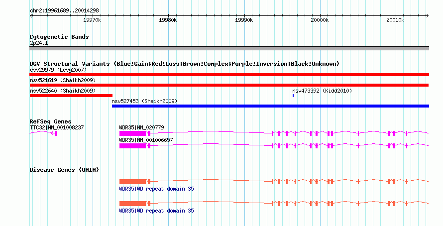 Variant DetailsVariant: nsv521619| Internal ID | 15448912 | | Landmark | | | Location Information | | | Cytoband | 2p24.1 | | Allele length | | Assembly | Allele length | | hg38 | 52610 | | hg19 | 52610 | | hg18 | 52610 | | hg17 | 52610 |