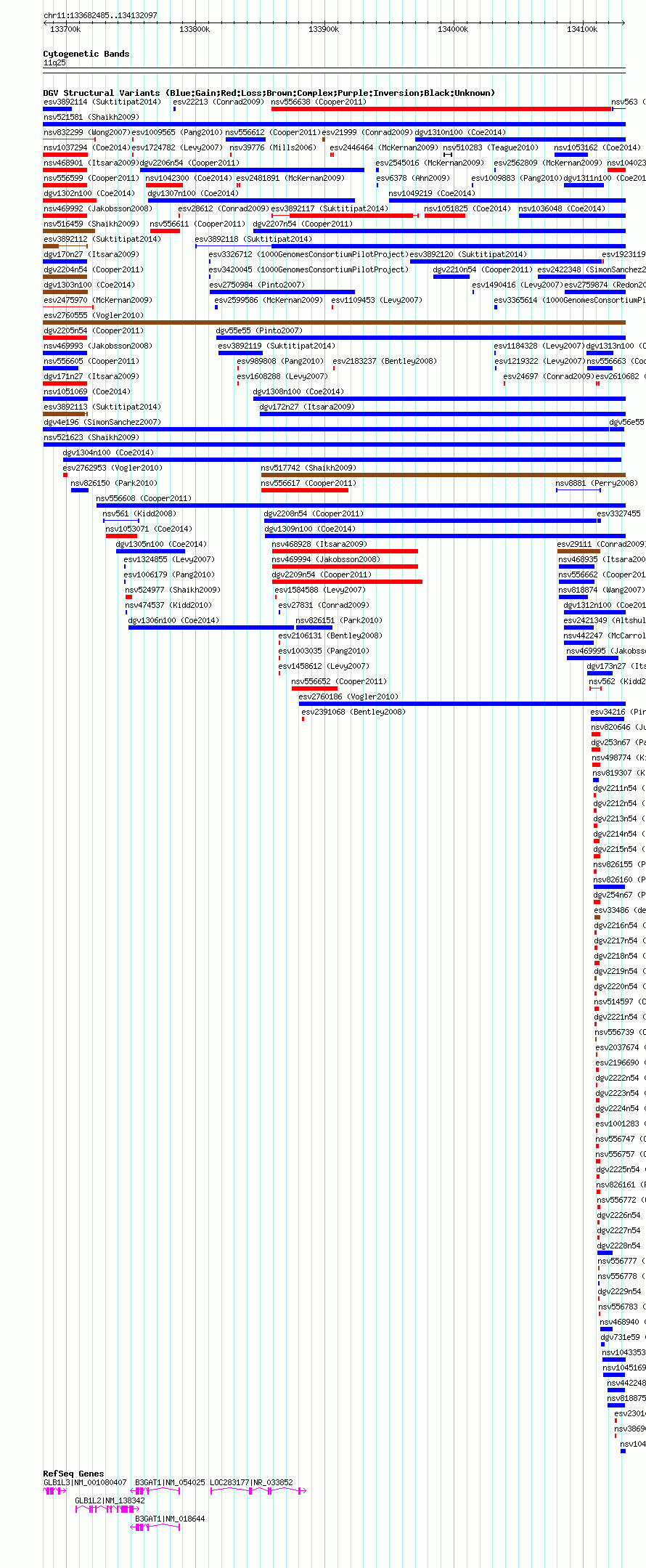 Variant DetailsVariant: nsv521623| Internal ID | 15102230 | | Landmark | | | Location Information | | | Cytoband | 11q25 | | Allele length | | Assembly | Allele length | | hg38 | 449613 | | hg19 | 449613 | | hg18 | 449613 | | hg17 | 449613 |