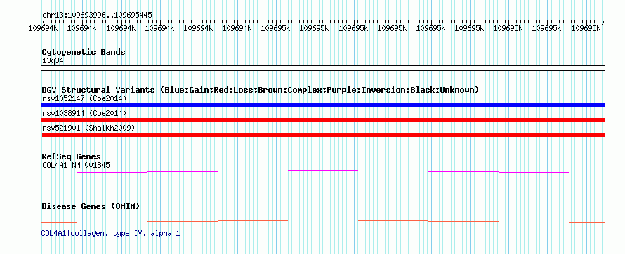 Variant DetailsVariant: nsv521901| Internal ID | 15449194 | | Landmark | | | Location Information | | | Cytoband | 13q34 | | Allele length | | Assembly | Allele length | | hg38 | 1450 | | hg19 | 1450 | | hg18 | 1450 | | hg17 | 1450 |