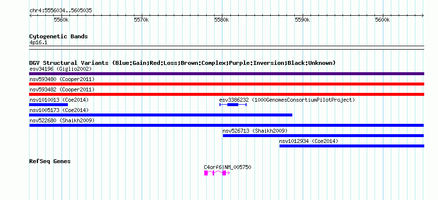 Variant DetailsVariant: nsv522680| Internal ID | 15449973 | | Landmark | | | Location Information | | | Cytoband | 4p16.1 | | Allele length | | Assembly | Allele length | | hg38 | 49002 | | hg19 | 49002 | | hg18 | 49002 | | hg17 | 49002 |