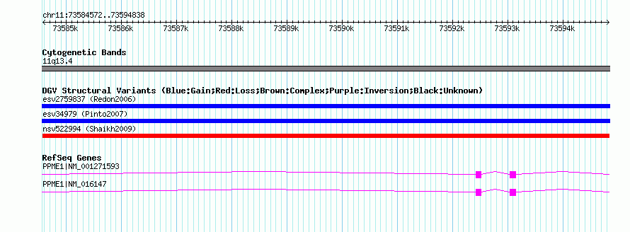 Variant DetailsVariant: nsv522994| Internal ID | 15450287 | | Landmark | | | Location Information | | | Cytoband | 11q13.4 | | Allele length | | Assembly | Allele length | | hg38 | 10267 | | hg19 | 10267 | | hg18 | 10267 | | hg17 | 10267 |