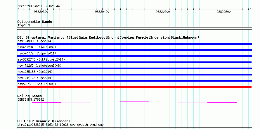 Variant DetailsVariant: nsv523179| Internal ID | 15450472 | | Landmark | | | Location Information | | | Cytoband | 15q26.3 | | Allele length | | Assembly | Allele length | | hg38 | 384 | | hg19 | 384 | | hg18 | 384 | | hg17 | 384 |