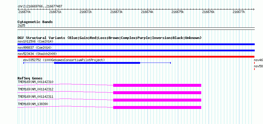 Variant DetailsVariant: nsv523434| Internal ID | 15450727 | | Landmark | | | Location Information | | | Cytoband | 2q35 | | Allele length | | Assembly | Allele length | | hg38 | 7722 | | hg19 | 7722 | | hg18 | 7722 | | hg17 | 7722 |