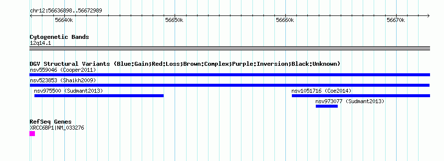 Variant DetailsVariant: nsv523853| Internal ID | 15451146 | | Landmark | | | Location Information | | | Cytoband | 12q14.1 | | Allele length | | Assembly | Allele length | | hg38 | 36092 | | hg19 | 36092 | | hg18 | 36092 | | hg17 | 36092 |
