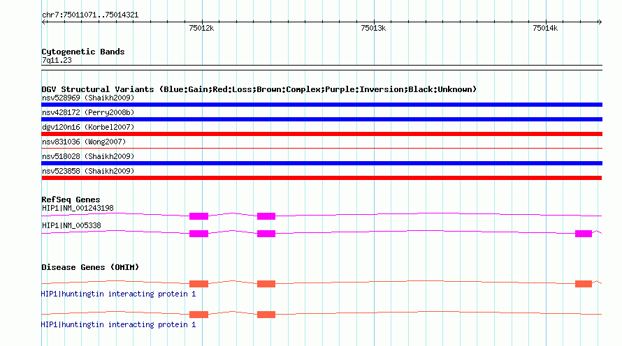 Variant DetailsVariant: nsv523858| Internal ID | 15451151 | | Landmark | | | Location Information | | | Cytoband | 7q11.23 | | Allele length | | Assembly | Allele length | | hg38 | 3271 | | hg19 | 3251 | | hg18 | 3251 | | hg17 | 3251 |