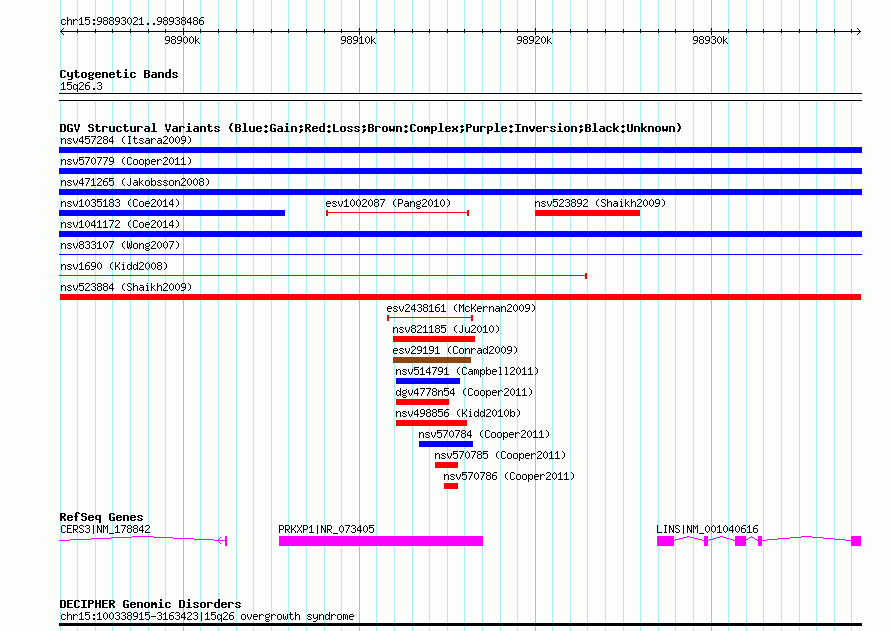Variant DetailsVariant: nsv523884| Internal ID | 15451177 | | Landmark | | | Location Information | | | Cytoband | 15q26.3 | | Allele length | | Assembly | Allele length | | hg38 | 45466 | | hg19 | 45466 | | hg18 | 45466 | | hg17 | 45466 |