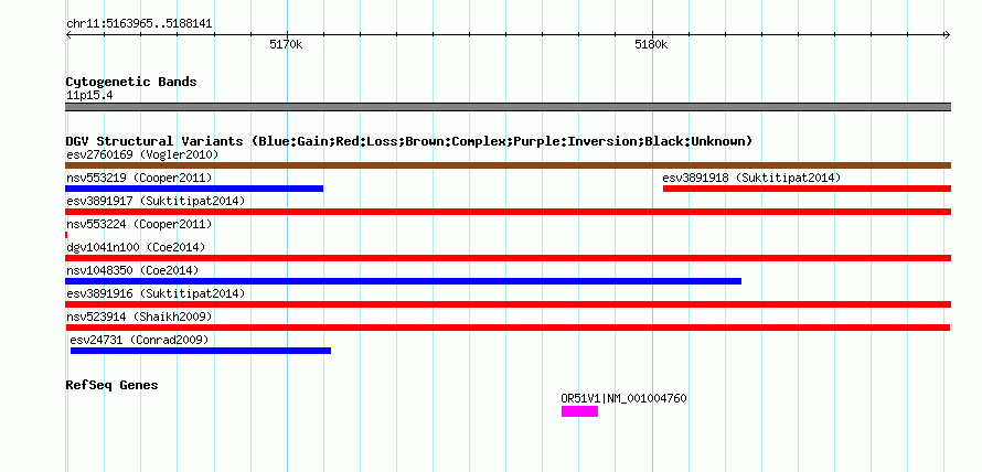 Variant DetailsVariant: nsv523914| Internal ID | 15451207 | | Landmark | | | Location Information | | | Cytoband | 11p15.4 | | Allele length | | Assembly | Allele length | | hg38 | 24177 | | hg19 | 24177 | | hg18 | 24177 | | hg17 | 24177 |