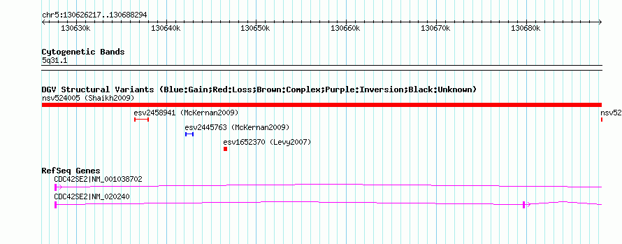 Variant DetailsVariant: nsv524005| Internal ID | 15451298 | | Landmark | | | Location Information | | | Cytoband | 5q23.3 | | Allele length | | Assembly | Allele length | | hg38 | 62078 | | hg19 | 62078 | | hg18 | 62078 | | hg17 | 62078 |