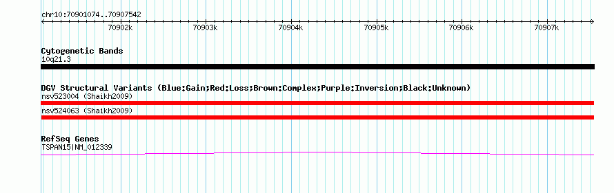 | | Variant Type | CNV loss | | Copy Number | | | Allele State | | | Allele Origin | | | Probe Count | | | Validation Flag | | | Merged Status | M | | Merged Variants | | | Supporting Variants | nssv699930 | | Samples | | | Known Genes | TSPAN15 | | Method | SNP array | | Analysis | Sample-level CNVs | | Platform | GPL6434 | | Comments | | | Reference | Shaikh_et_al_2009 | | Pubmed ID | 19592680 | | Accession Number(s) | nsv524063
