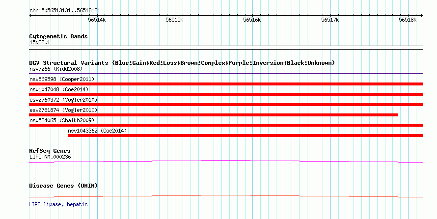 Variant DetailsVariant: nsv524065| Internal ID | 15104672 | | Landmark | | | Location Information | | | Cytoband | 15q21.3 | | Allele length | | Assembly | Allele length | | hg38 | 5051 | | hg19 | 5051 | | hg18 | 5051 | | hg17 | 5051 |