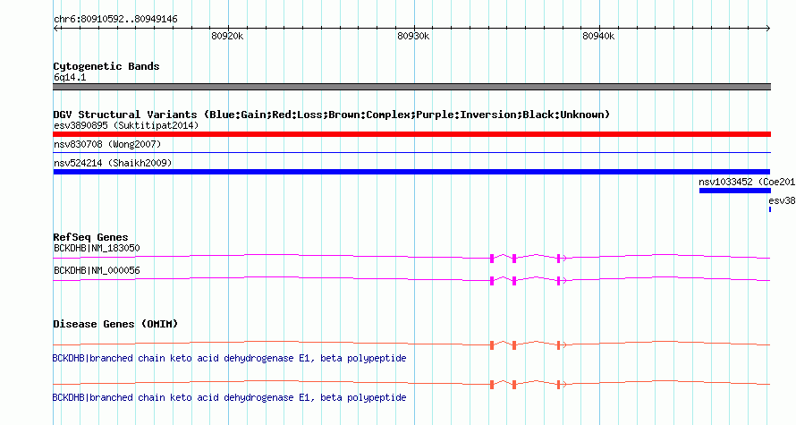 | | Variant Type | CNV gain | | Copy Number | | | Allele State | | | Allele Origin | | | Probe Count | | | Validation Flag | | | Merged Status | M | | Merged Variants | | | Supporting Variants | nssv700101 | | Samples | | | Known Genes | BCKDHB | | Method | SNP array | | Analysis | Sample-level CNVs | | Platform | GPL6434 | | Comments | | | Reference | Shaikh_et_al_2009 | | Pubmed ID | 19592680 | | Accession Number(s) | nsv524214