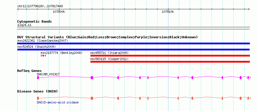 | | Variant Type | CNV gain | | Copy Number | | | Allele State | | | Allele Origin | | | Probe Count | | | Validation Flag | | | Merged Status | M | | Merged Variants | | | Supporting Variants | nssv700473 | | Samples | | | Known Genes | DAO | | Method | SNP array | | Analysis | Sample-level CNVs | | Platform | GPL6434 | | Comments | | | Reference | Shaikh_et_al_2009 | | Pubmed ID | 19592680 | | Accession Number(s) | nsv524524