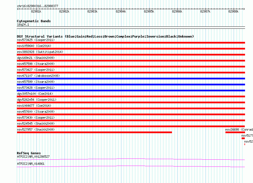 Variant DetailsVariant: nsv524545| Internal ID | 15105152 | | Landmark | | | Location Information | | | Cytoband | 16q24.1 | | Allele length | | Assembly | Allele length | | hg38 | 8062 | | hg19 | 8062 | | hg18 | 8062 | | hg17 | 8062 |