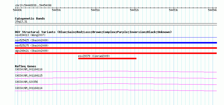 | | Variant Type | CNV loss | | Copy Number | | | Allele State | | | Allele Origin | | | Probe Count | | | Validation Flag | | | Merged Status | M | | Merged Variants | dgv249n21 | | Supporting Variants | nssv700527 | | Samples | | | Known Genes | CASS4 | | Method | SNP array | | Analysis | Sample-level CNVs | | Platform | GPL6434 | | Comments | | | Reference | Shaikh_et_al_2009 | | Pubmed ID | 19592680 | | Accession Number(s) | nsv524572
