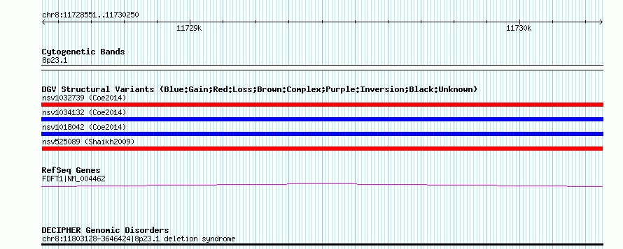 Variant DetailsVariant: nsv525089| Internal ID | 15452382 | | Landmark | | | Location Information | | | Cytoband | 8p23.1 | | Allele length | | Assembly | Allele length | | hg38 | 1700 | | hg19 | 1700 | | hg18 | 1700 | | hg17 | 1700 |