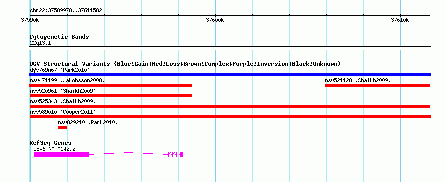 Variant DetailsVariant: nsv525343| Internal ID | 15105950 | | Landmark | | | Location Information | | | Cytoband | 22q13.1 | | Allele length | | Assembly | Allele length | | hg38 | 21605 | | hg19 | 21605 | | hg18 | 21605 | | hg17 | 21605 |