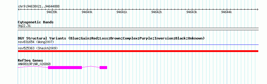Variant DetailsVariant: nsv525363| Internal ID | 15452656 | | Landmark | | | Location Information | | | Cytoband | 9q22.31 | | Allele length | | Assembly | Allele length | | hg38 | 6868 | | hg19 | 6868 | | hg18 | 6868 | | hg17 | 6868 |