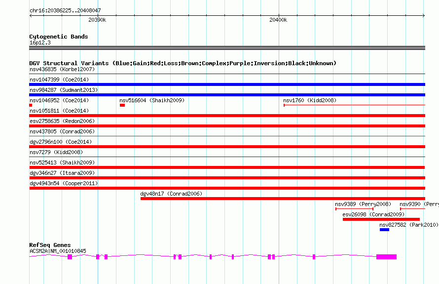 Variant DetailsVariant: nsv525413| Internal ID | 15452706 | | Landmark | | | Location Information | | | Cytoband | 16p12.3 | | Allele length | | Assembly | Allele length | | hg38 | 21823 | | hg19 | 21823 | | hg18 | 21823 | | hg17 | 21823 |