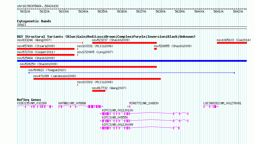 | Variant Type | CNV gain | Copy Number | | Allele State | | Allele Origin | | Probe Count | | Validation Flag | | Merged Status | M | Merged Variants | | Supporting Variants | nssv701592 | Samples | | Known Genes | CCDC135, KATNB1, KIFC3, LOC388282, MIR6772 | Method | SNP array | Analysis | Sample-level CNVs | Platform | GPL6434 | Comments | | Reference | Shaikh_et_al_2009 | Pubmed ID | 19592680 | Accession Number(s) | nsv525464